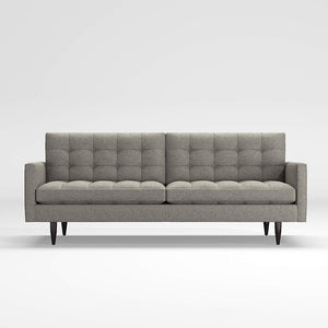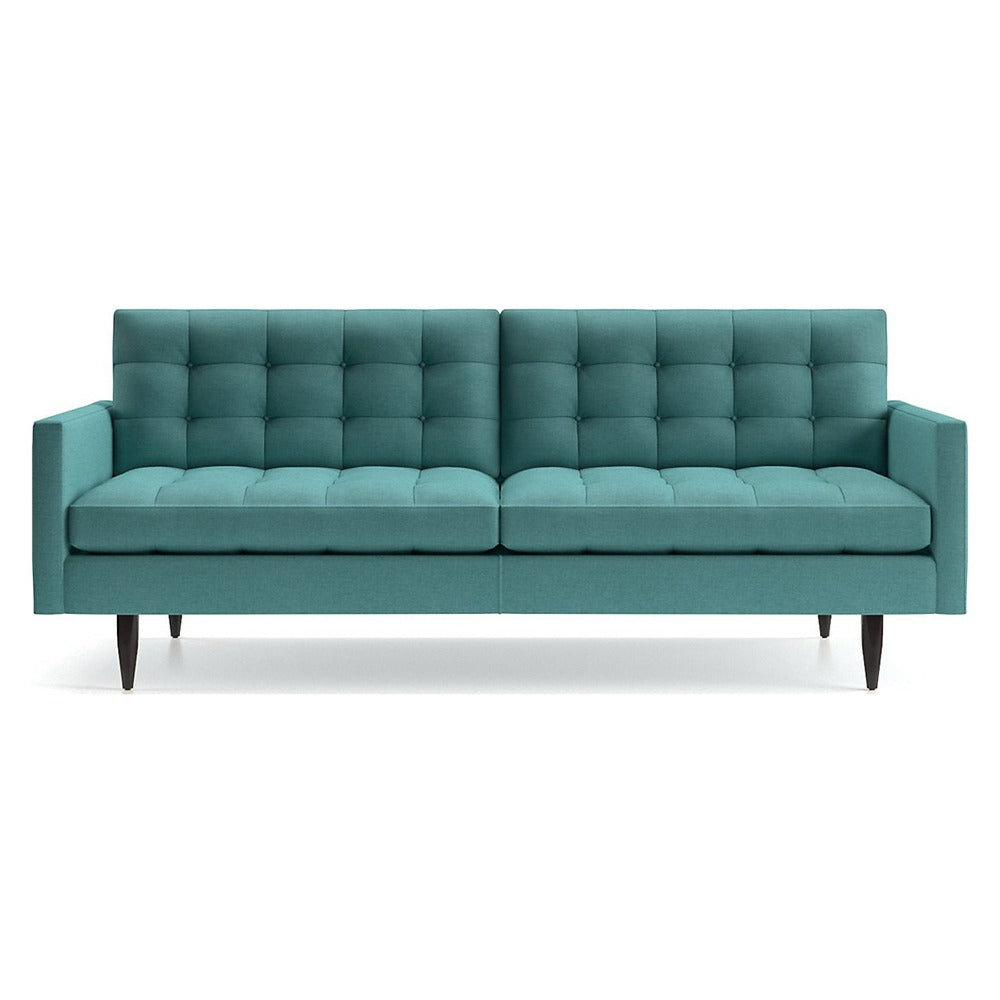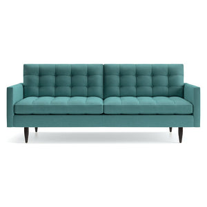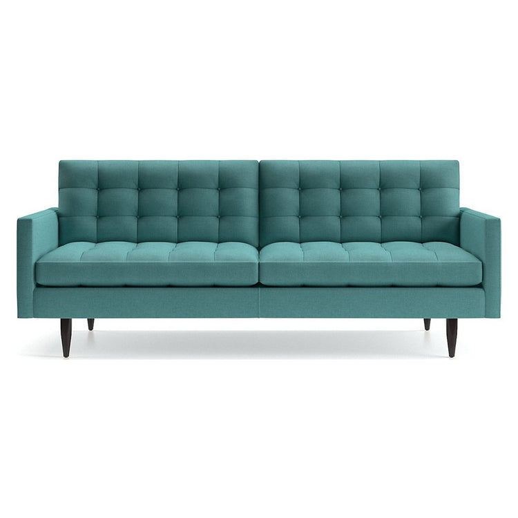 Indulge in timeless style with the Alani Button Tufted 3 Seater Sofa. Expertly hand-tufted to perfection, this luxurious sofa offers a sleek and modern look with soft, tailored cushions, slim track arms, and a menswear-inspired fabric. Experience comfortable seating and an exclusive mid-century style that will make a lasting impression.