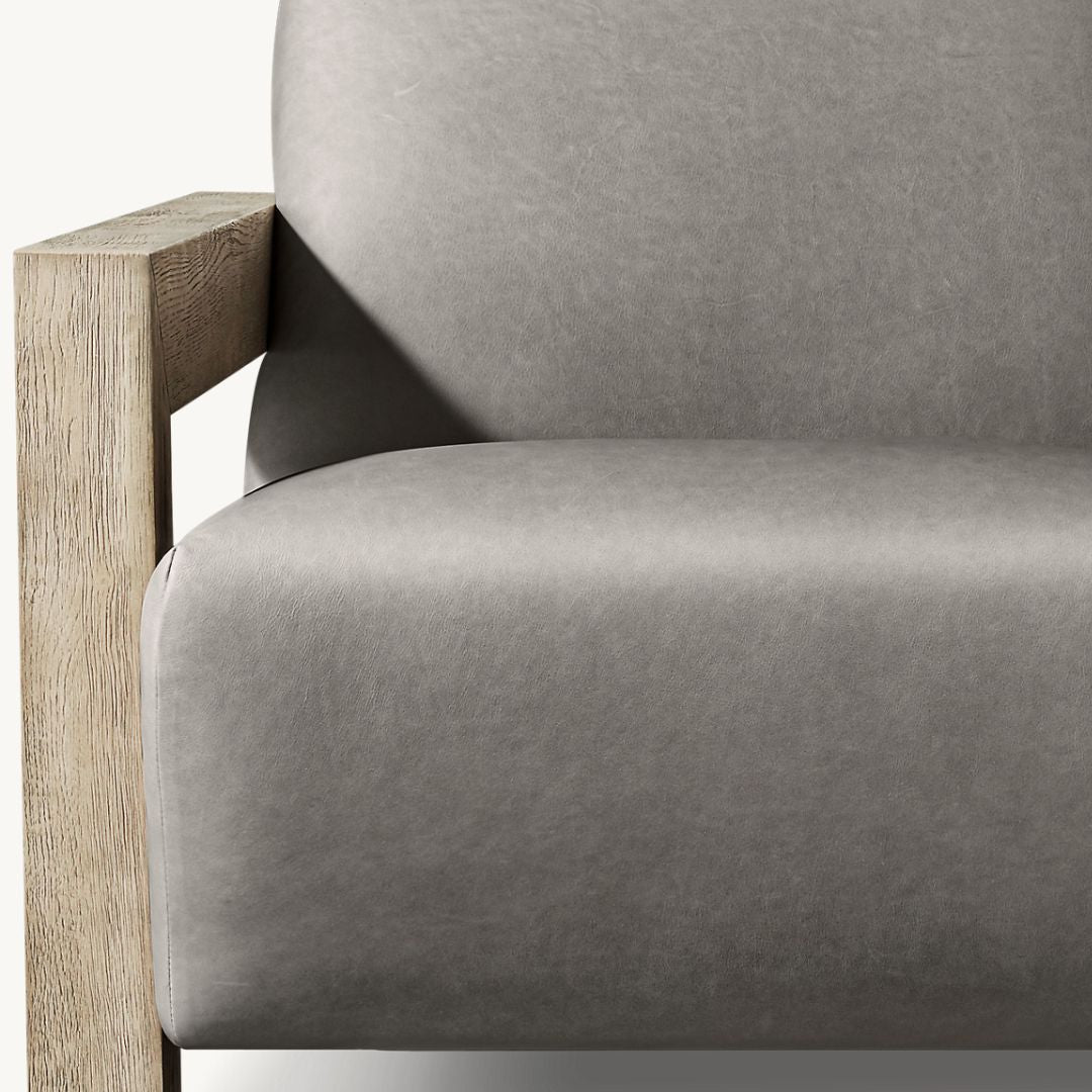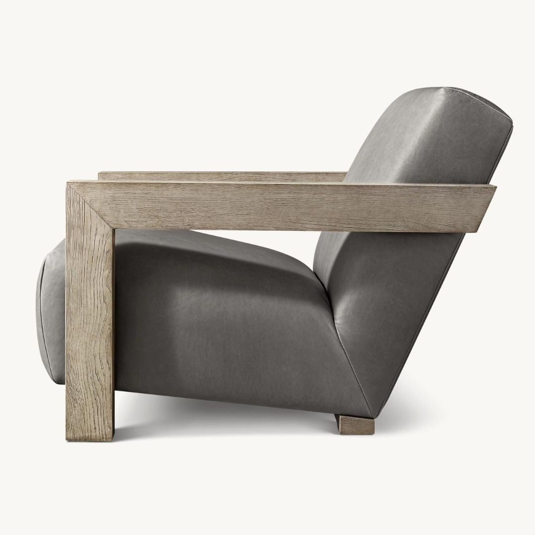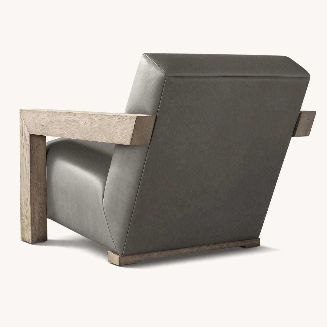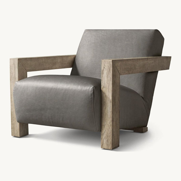 Our Alta Chair is an exercise in balance. Substantial, solid oak arms are weighty at the front, but seem to defy gravity at the chair's back, appearing to float. Angular edges are offset by plush upholstery and a reclined seat that invites repose.