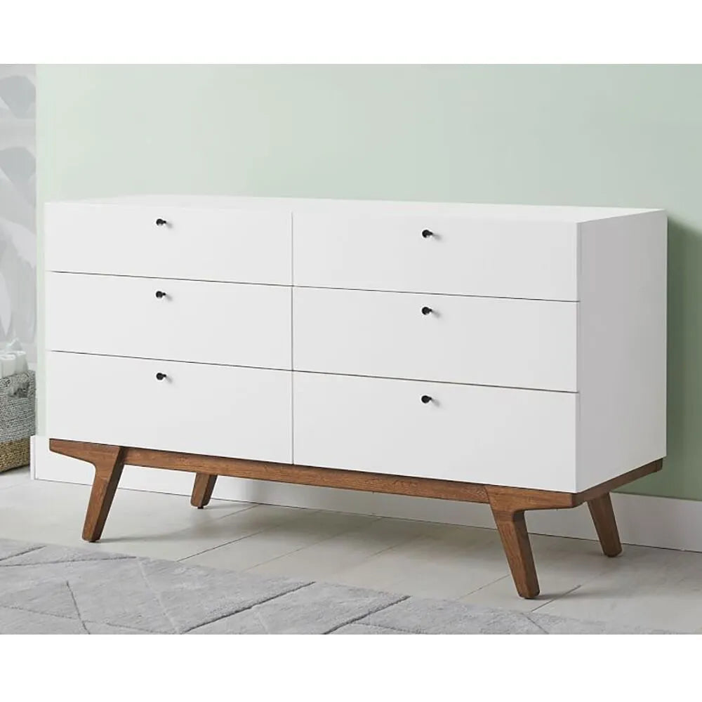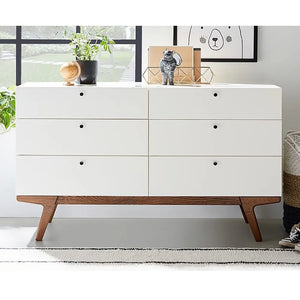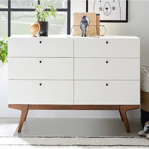 This Avery 6 Drawer Dresser is an elegant and tasteful addition to any bedroom. Featuring six solid wood drawers with black handles and a classic white finish, it's designed to stylishly enhance any space. Place a stunning mirror atop this modern drawer to create a look that will never go out of style.