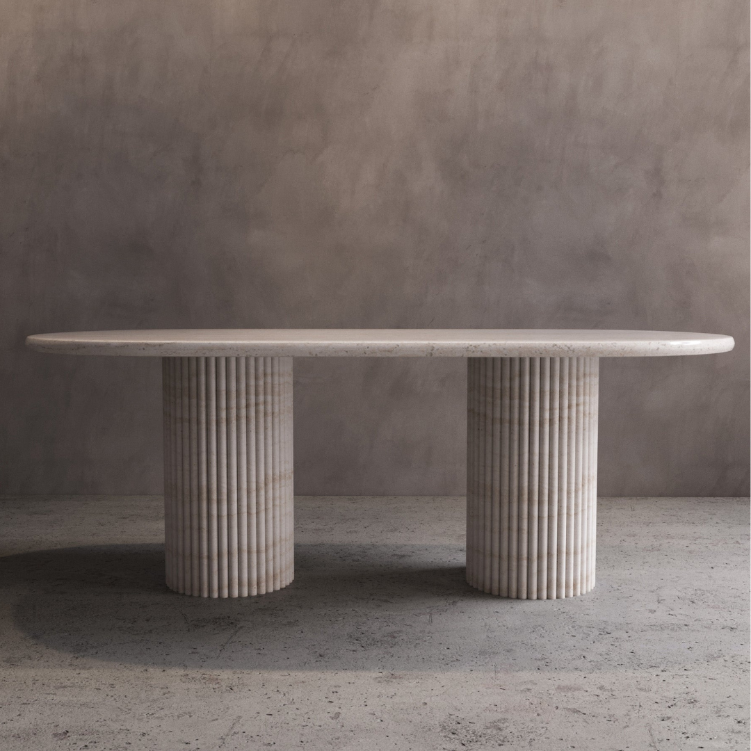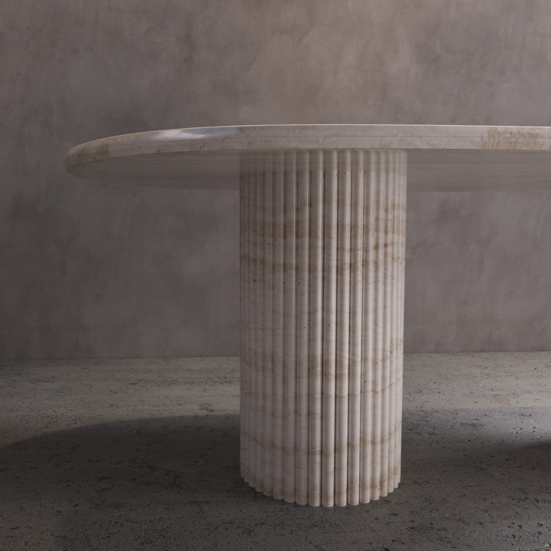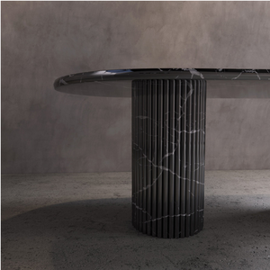 Introducing the Bilagio Minimalist Fluted Oval Dining Table. Experience the perfect blend of minimalism and luxury with this classic addition to your living space. Its understated elegance will elevate your interior design game. Made with luxurious Nero Marquina marble, this dining table is a must-have for any sophisticated home. The table top is spacious enough to fit 6 people comfortably.