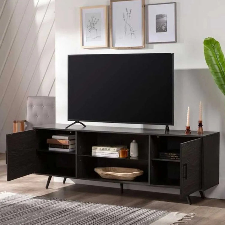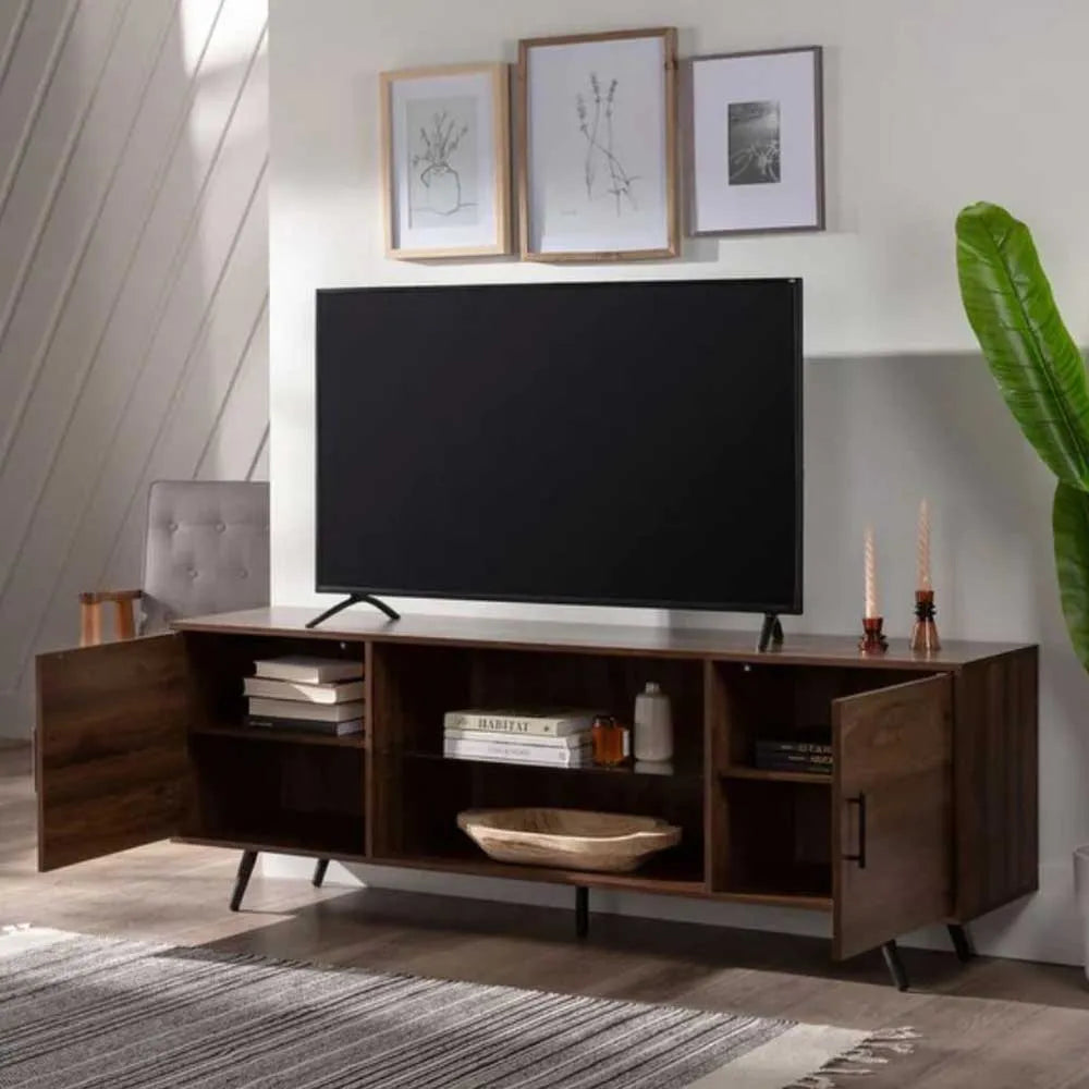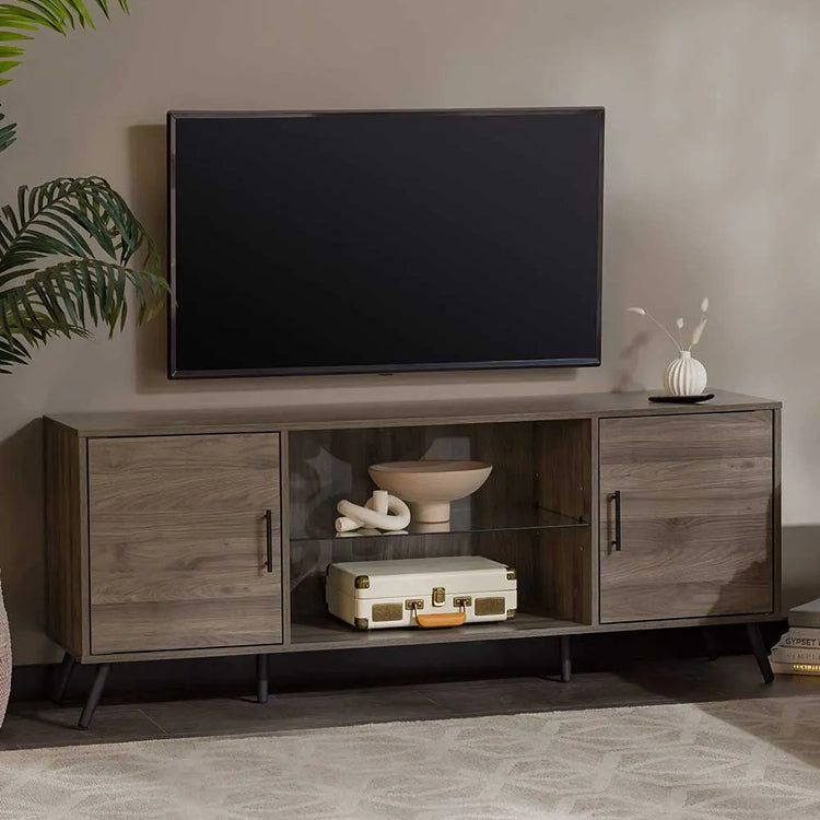 The Camilla Modern TV Stand is crafted from eco-friendly materials and features a Mid-Century Modern design that provides a stylish and sophisticated look. Its open shelving and cabinets offer plenty of storage for a range of items, while its sleek silhouette ensures it fits seamlessly into any room of the home. Ideal for the luxury-minded who appreciate quality craftsmanship and uncompromising style.