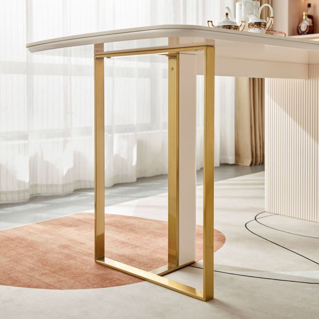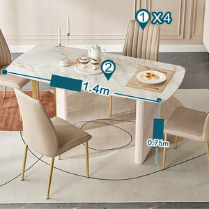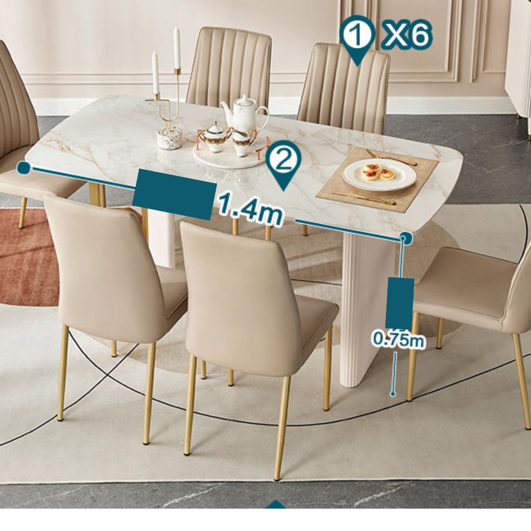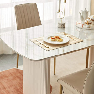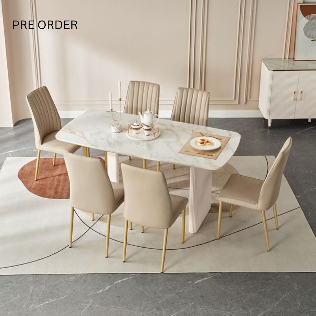 Elevate your dining experience with the Celeste Dining Table. Its luxurious marble effect table top and elegant gold accent leg add a touch of sophistication to any contemporary space. Minimal in design, yet rich in style, this cream coloured table is sure to impress. Paired with the gorgeous Celeste dining chairs, made for style and comfort.