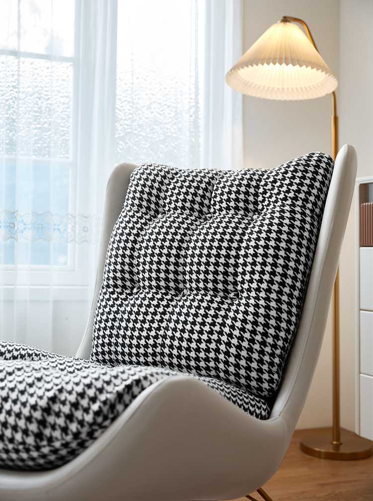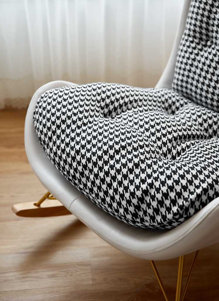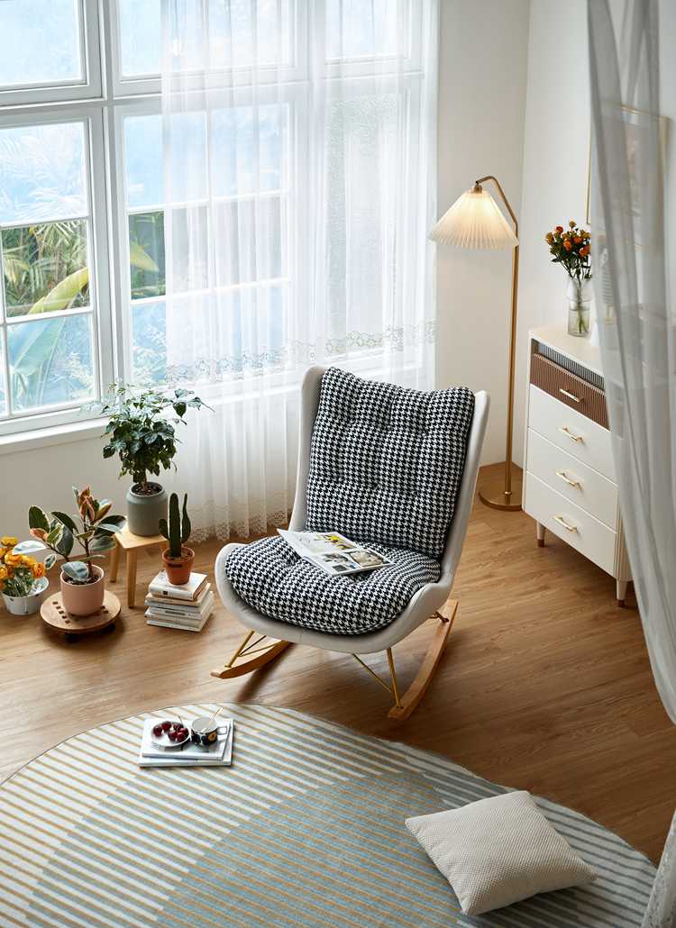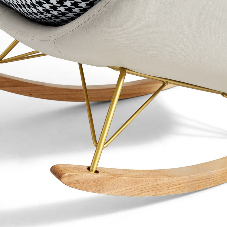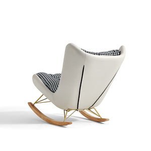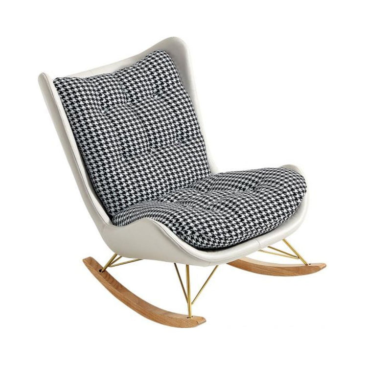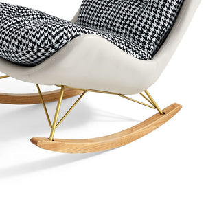 Chill and relax back in our Dogtooth rocker chair. A large accent chair made from rubber wood for durability and stuffed with goose feathers. Elevate any space with this stunning Nordic inspired rocking chair.