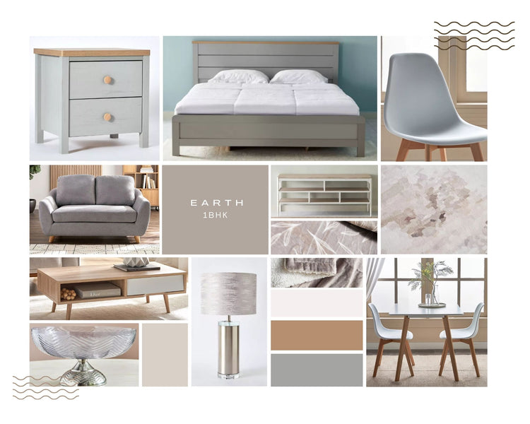 The Earth 1BHK package has been curated by our London designer Zaynab Sheikh. Her vision for this collection was using a series of colours and textures inspired by the Earth and its elements.