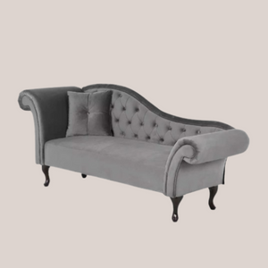 This classic chaise lounge features an elegant tufted button design and stunning wooden legs for a timeless piece that will make a statement in any room. Its plush seat and back seat offer extra comfort for a luxurious experience. Make a lasting impression with the Elegant Era Chaise Lounge. Available in two stunning colours!