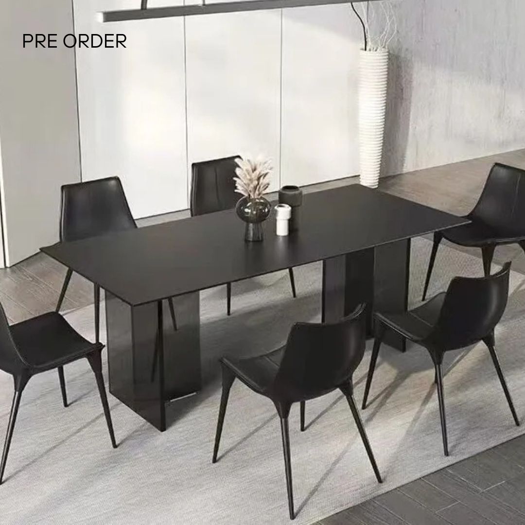 Experience a blend of modern and artsy design with our Eros Slate and Acrylic Dining Table. The slate table top adds a touch of sophistication while the acrylic legs provide a sleek and sexy look. Elevate your dining experience with this unique and stylish table.