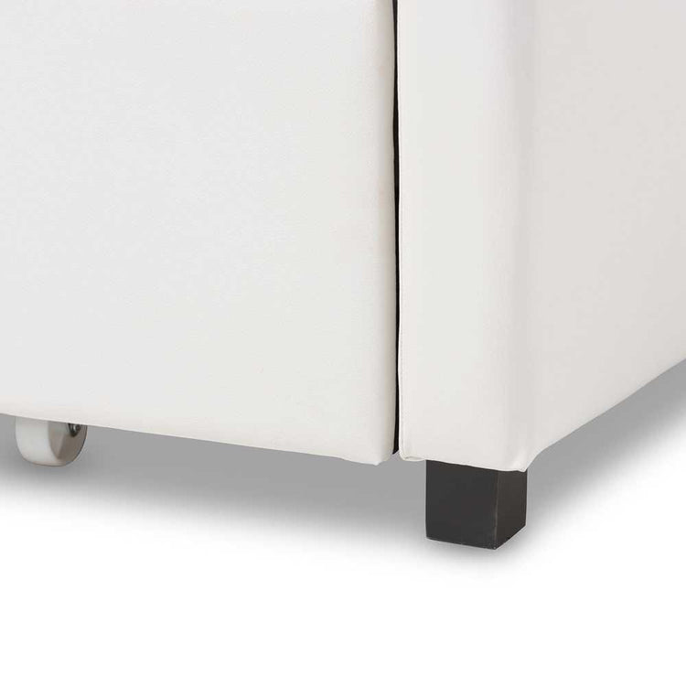 Finn Faux Leather Daybed is the perfect choice for those who wish to maximize space while still providing a comfortable environment for guests. Crafted from luxurious faux-leather, this trundle daybed is designed to accommodate visitors with ease. Complete with a roll-out trundle tucked away during the day, this multi-functional piece of furniture provides an elegant and exclusive seating arrangement that exudes sophistication.