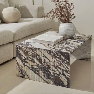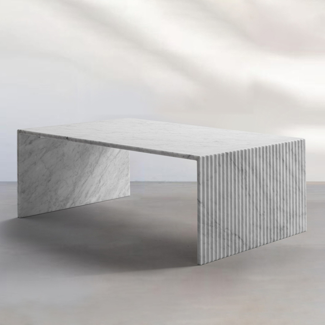 Introducing the Geo Minimalist Fluted Rectangular Marble Coffee Table. Experience the perfect blend of minimalism and luxury with this classic addition to your living space. Its understated elegance will elevate your interior design game. Made with luxurious Italian marble, this coffee table is a must-have for any sophisticated home. Matching side table available.