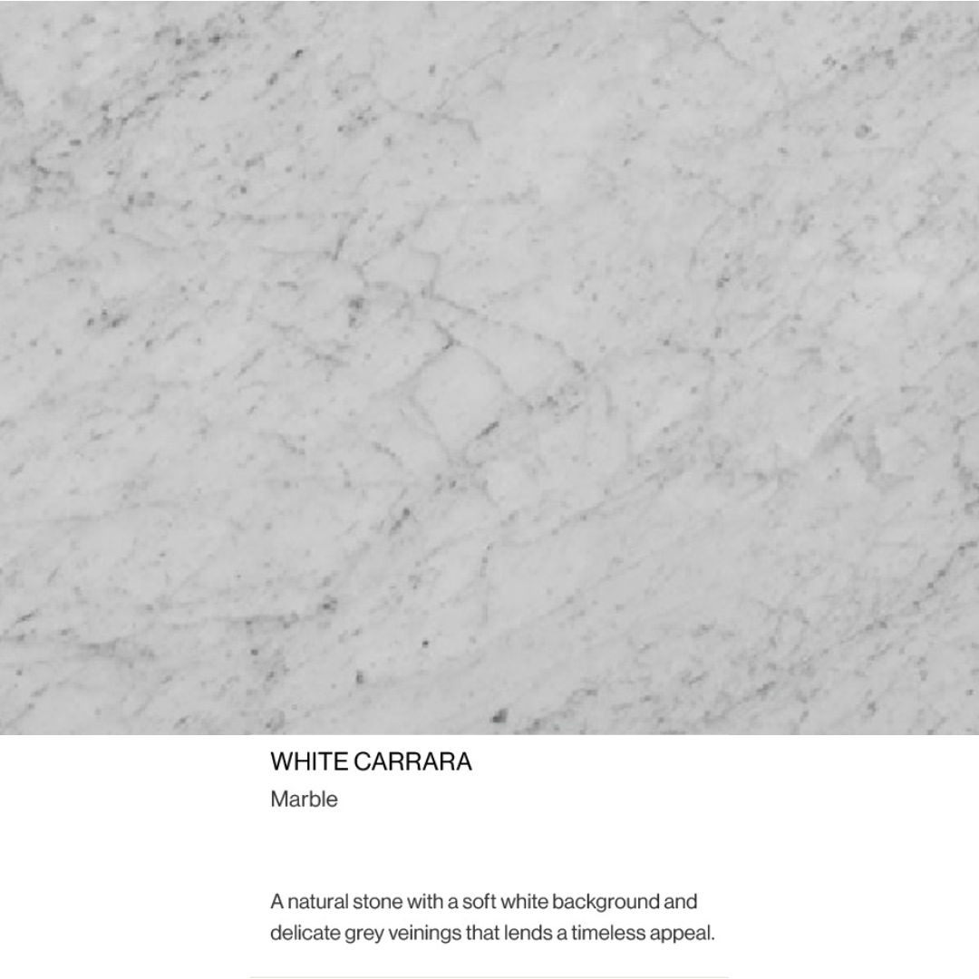 - Italian sourced Carrara marble or Calacatta Viola marble