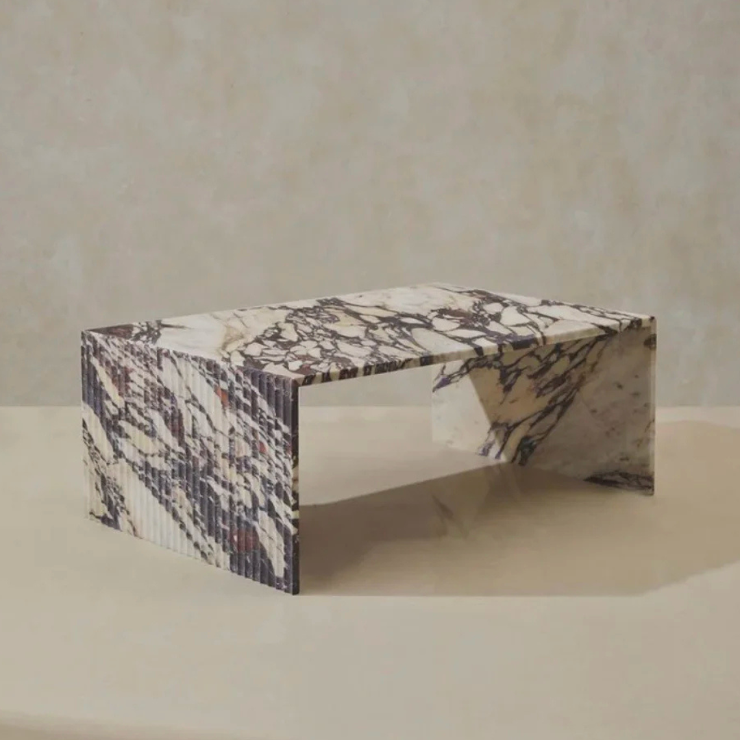 Geo Minimalist Fluted Rectangular Calacatta Viola Marble Coffee Table