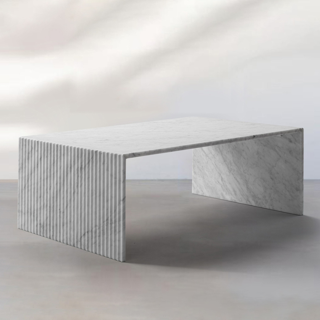 Geo Minimalist Fluted Rectangular Carrara Marble Coffee Table