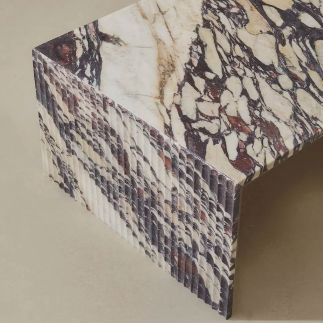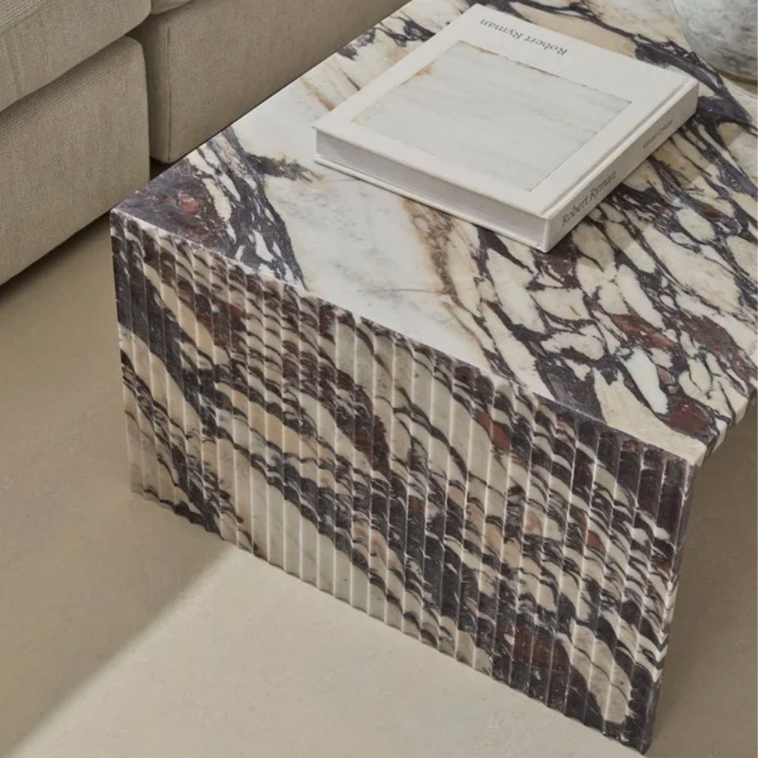 Introducing the Geo Minimalist Fluted Rectangular Marble Coffee Table. Experience the perfect blend of minimalism and luxury with this classic addition to your living space. Its understated elegance will elevate your interior design game. Made with luxurious Italian marble, this coffee table is a must-have for any sophisticated home. Matching side table available.