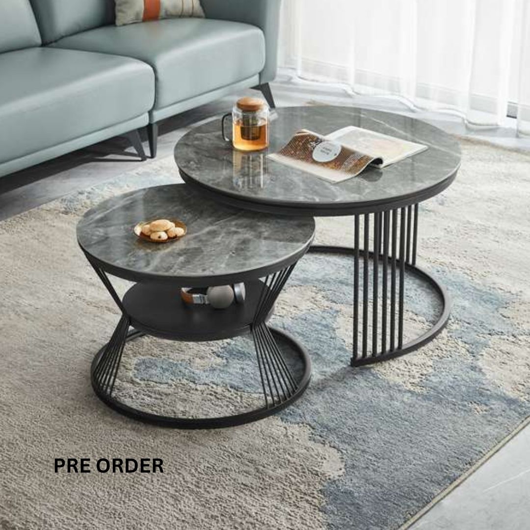 Elevate your living space with our Hera Coffee Table Set. This stylish and modern set of 2 tables features a sturdy design and a luxurious marble effect. Upgrade your home decor with this fashionable addition that is sure to impress your guests!