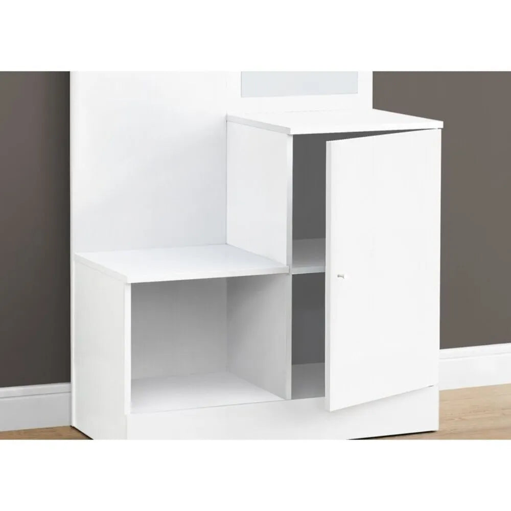 Introducing the Holbeck Curved Hallway Cabinet - the perfect solution for a clutter-free home. This Scandinavian-style wardrobe set not only offers ample storage space, but also adds a touch of modern design to any hallway. Enjoy integrated compartments, including a cabinet with a shelf and an open shelf for your organizational needs.