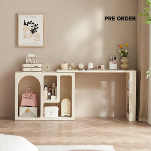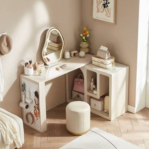 Introducing our Hypnos dressing table set, perfect for any minimalist enthusiast. The set features a clean, aesthetic design in a beautiful cream color. With interchangeable pieces, this versatile set allows you to customize your space to fit your unique style. Embrace simplicity and elevate your daily routine with Hypnos!