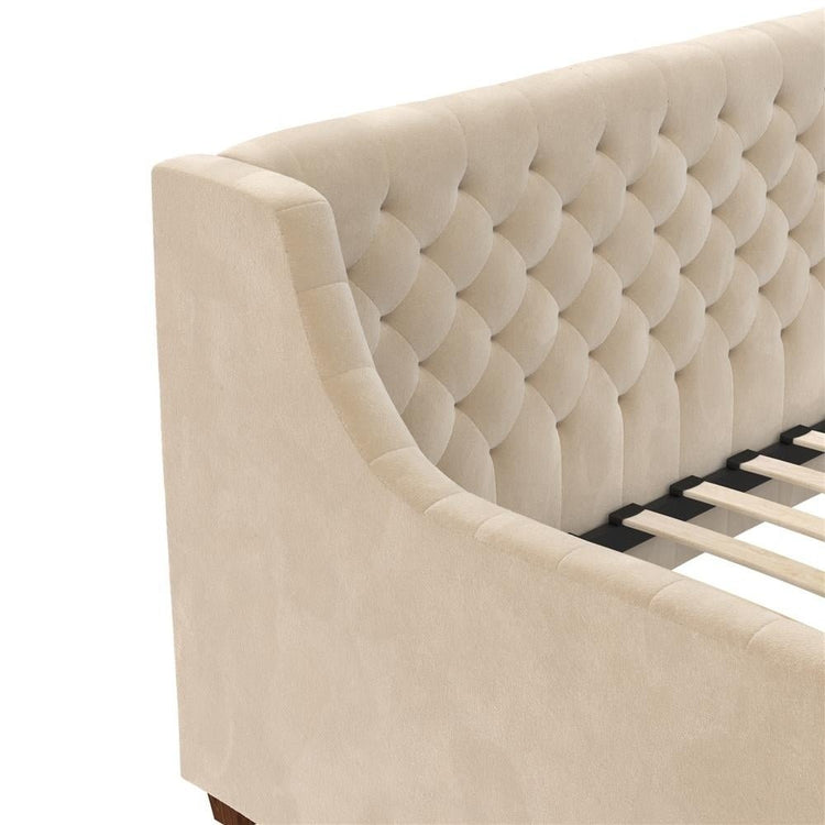 Our Jamie Velvet Daybed is the perfect combination of luxury and comfort. Its diamond tufted detailing adds an exquisite elegance to any room, while its spacious design provides optimal comfort for your overnight guests. Crafted on a solid frame for added support and stability, it will have your guests waking up feeling refreshed. Bring the perfect balance of beauty and comfort into your home with Jamie Velvet Daybed.