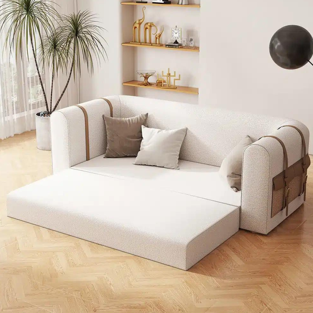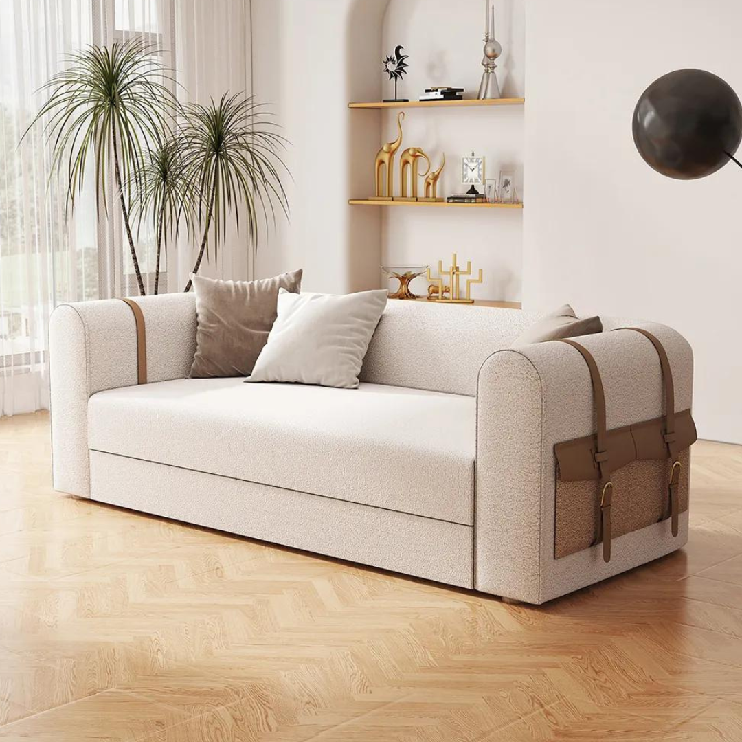 Experience the perfect combination of comfort and style with our Karmel Boucle Sofa Bed. This modern and nordic-inspired piece is not only space-saving, but also incredibly comfortable, making it the perfect addition to any contemporary living space. Upgrade your home with this stylish and functional sofa bed today!