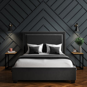 Treat yourself to the ultimate in luxury and modern style with the Knox Upholstered Bed. This stunning piece of bedroom furniture features a dark grey upholstered bed with modern and sleek studded details. Its velvet headboard and ottoman design offer plenty of storage underneath the mattress, perfect for compact bedrooms or studio apartments. Imbue your living space with exquisite style and luxury with the Knox Upholstered Bed.