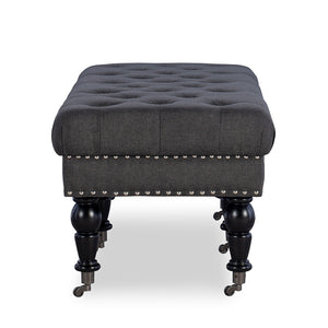- Button-tufted charcoal upholstery