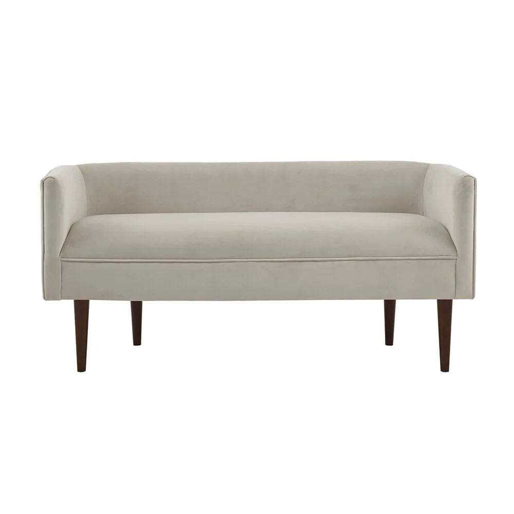 Add a touch of classic elegance to your living space with this sophisticated Lovisa Accent Bench. Upholstered in a luxurious cream velvet, this accent bench boasts a low back and sides for a chic, transitional look. Solid wood legs in a dark brown finish provide a bold accent that is sure to impress your guests.