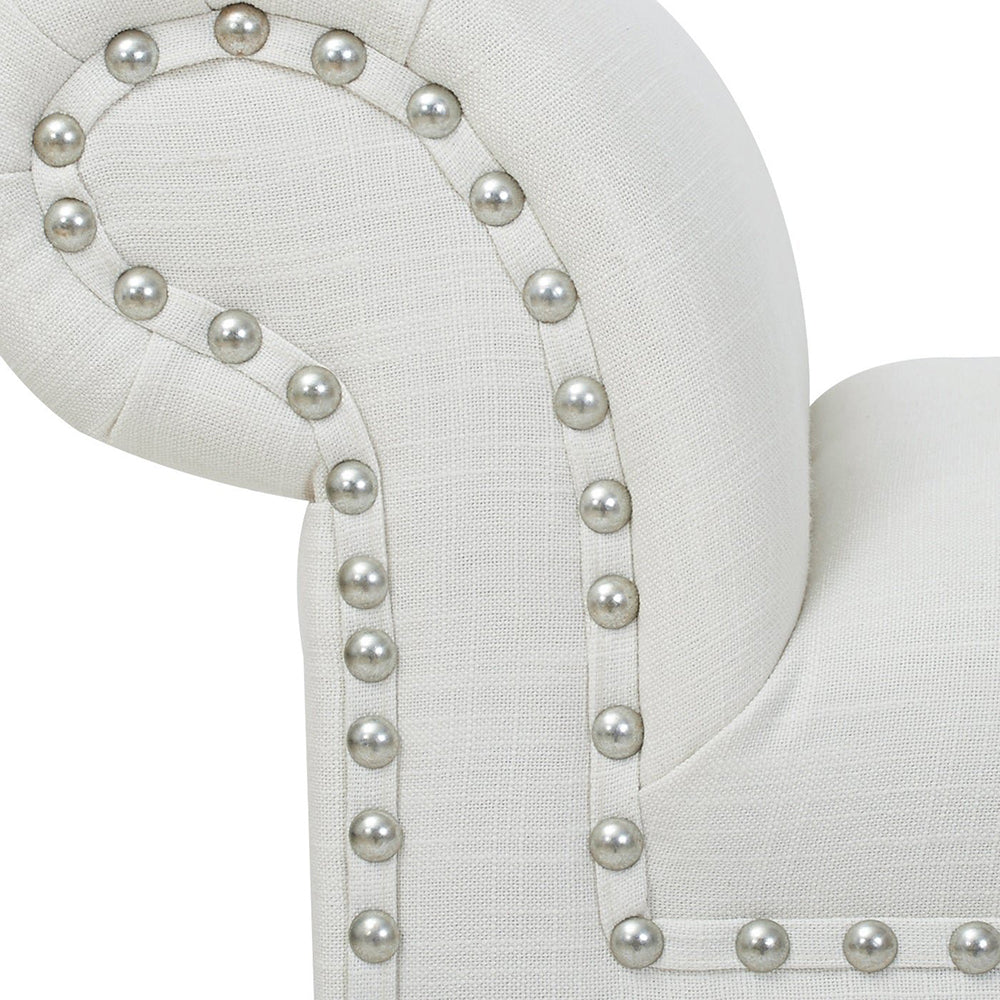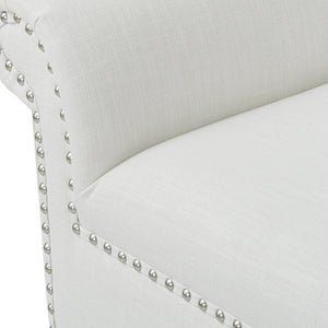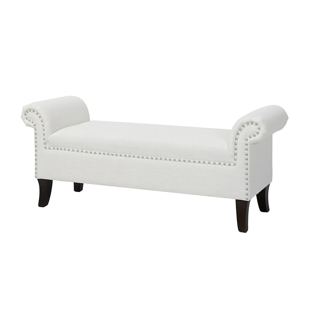 Infuse elegant style into any room with this Milan Ottoman Accent Bench, crafted from premium fabric and MDF with a solid wood frame. With a luxurious, sophisticated design featuring a nail head accent trim and clean lines, it adds a chic touch to any living space.