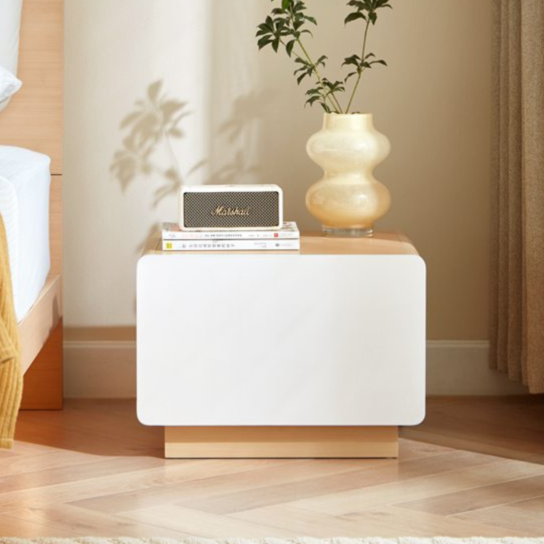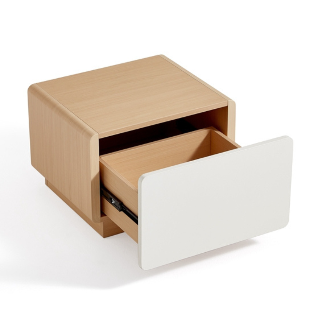 Nifty Minimal Wooden Rounded Rectangle Bedside Table - Set of 2