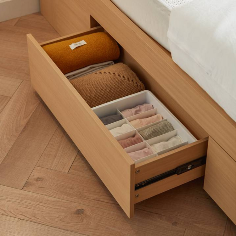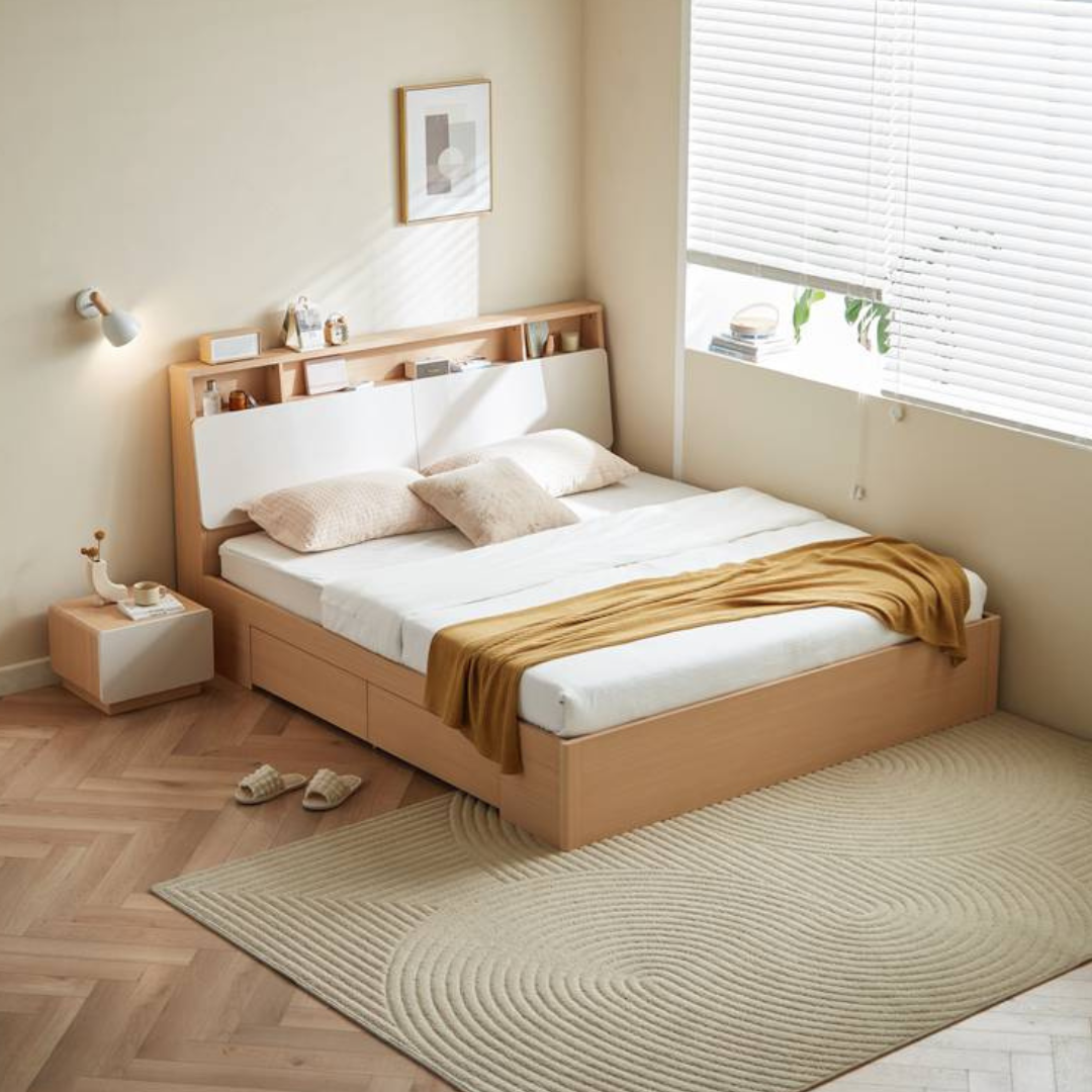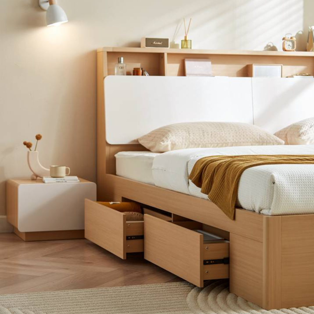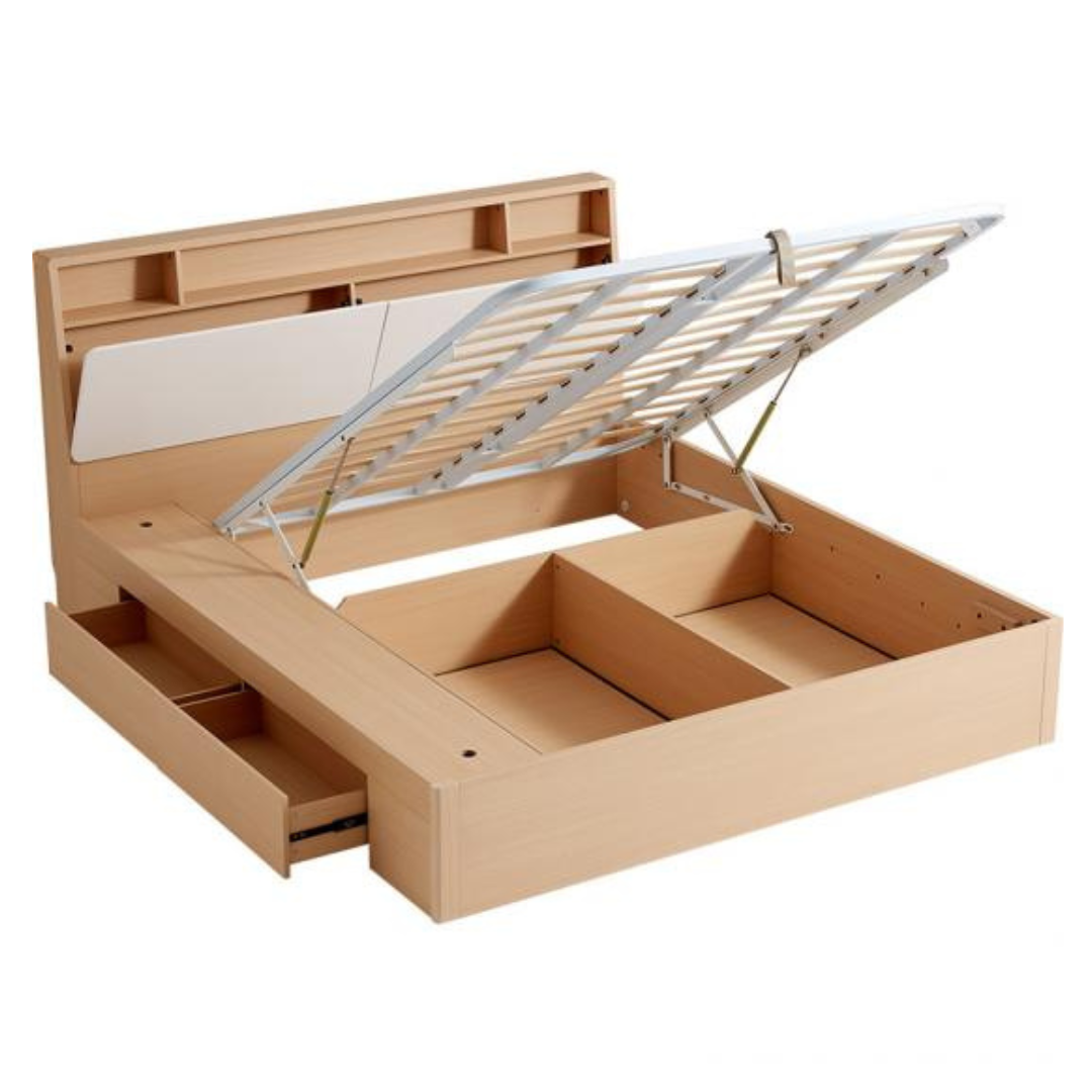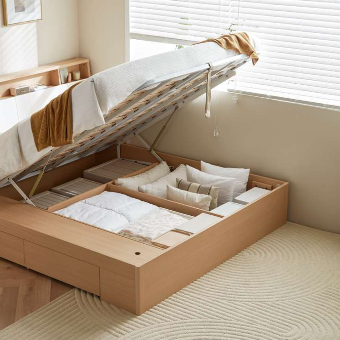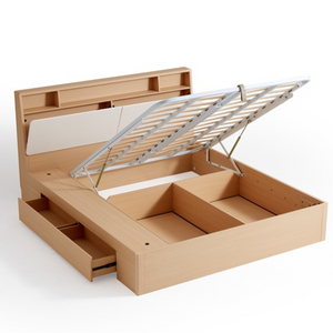 Transform your bedroom with our Nifty Wooden Hydraulic Bed With Storage! This sleek and minimal design offers ample storage options, making it perfect for small spaces. Say goodbye to clutter with the under bed and headboard storage, plus convenient drawers for easy organization. Upgrade your sleep experience now!