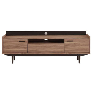 Be a visionary with the Noah TV Stand. Its sophisticated mid-century style and durable walnut grain laminate, particleboard frame, and matte black metal hardware blend together to create the perfect addition to any modern living room, lounge, or recreation area. The full-extension center drawer and shelving units feature hinged wood doors, while the four sleek and sturdy legs offer upper and lower level cable management holes for optimal organization.
