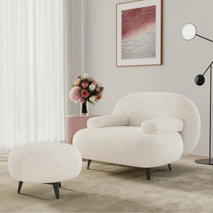Introducing the ultimate in home comfort and style - the Owal Boucle Arm Chair and Footstool! Soft and modern with a stylish boucle design, this chair is incredibly comfortable and will elevate any room. Treat yourself to luxurious relaxation.