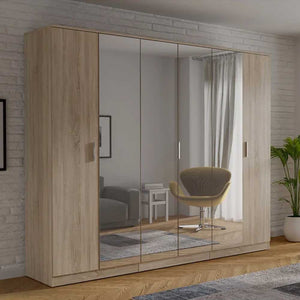 Organize your space in timeless style with the Parker 6 Door Wardrobe. This luxurious piece of furniture offers ample storage space in a classic Sonoma Oak design for both practical and aesthetic purposes. The mirror on the door helps to optically enlarge your room, while its sophisticated decor creates an impression of sophisticated elegance and exclusivity. Enjoy the ultimate in style and functionality with the Parker 6 Door Wardrobe.