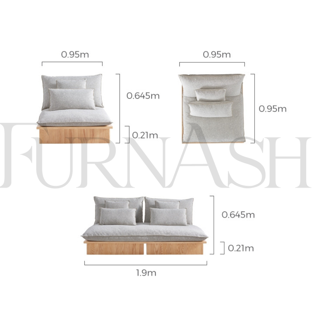 Experience the ultimate in modern minimalism with our Sabi Japandi Inspired Sofa Seating. Made with a solid wood base and luxurious linen fabric, this piece is inspired by the popular "japandi" trend. Elevate your space with its sleek design and feel the harmony of east and west.