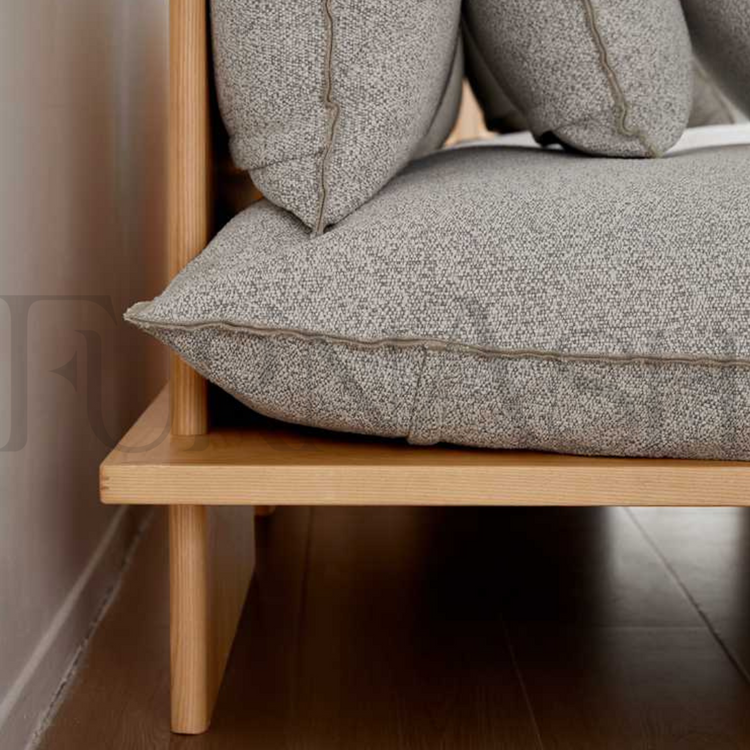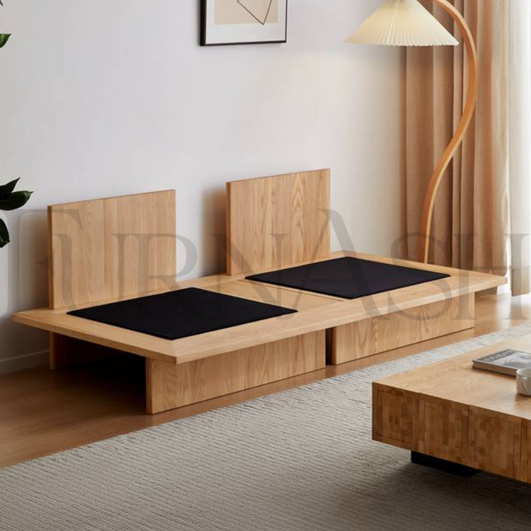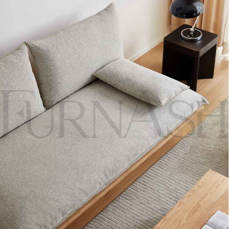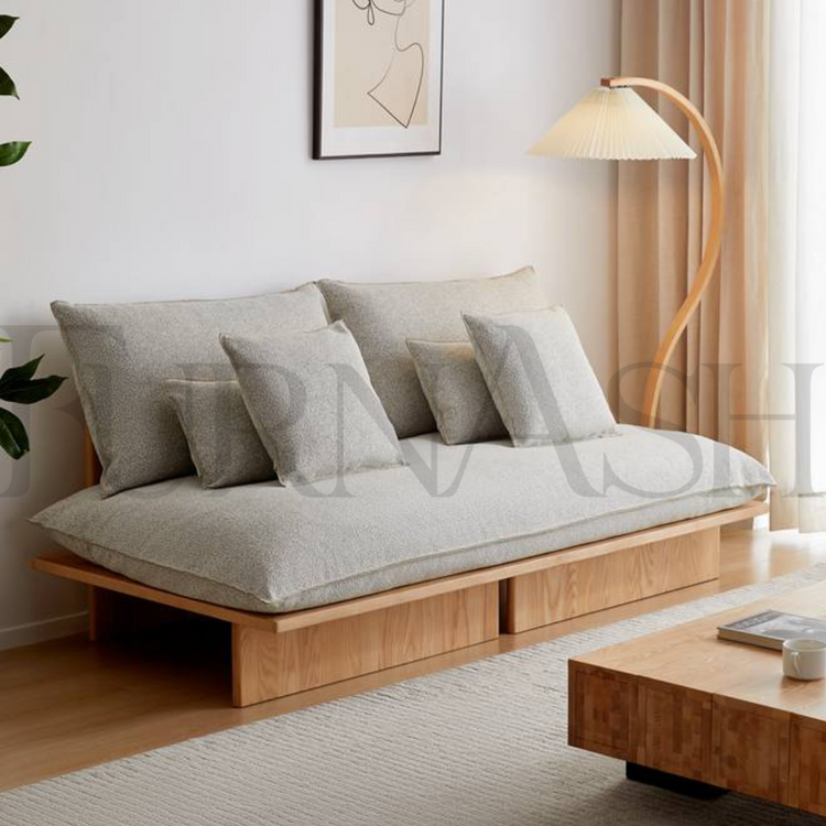 Experience the ultimate in modern minimalism with our Sabi Japandi Inspired Sofa Seating. Made with a solid wood base and luxurious linen fabric, this piece is inspired by the popular "japandi" trend. Elevate your space with its sleek design and feel the harmony of east and west.