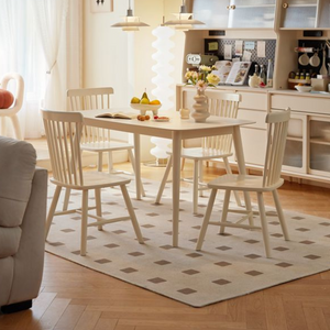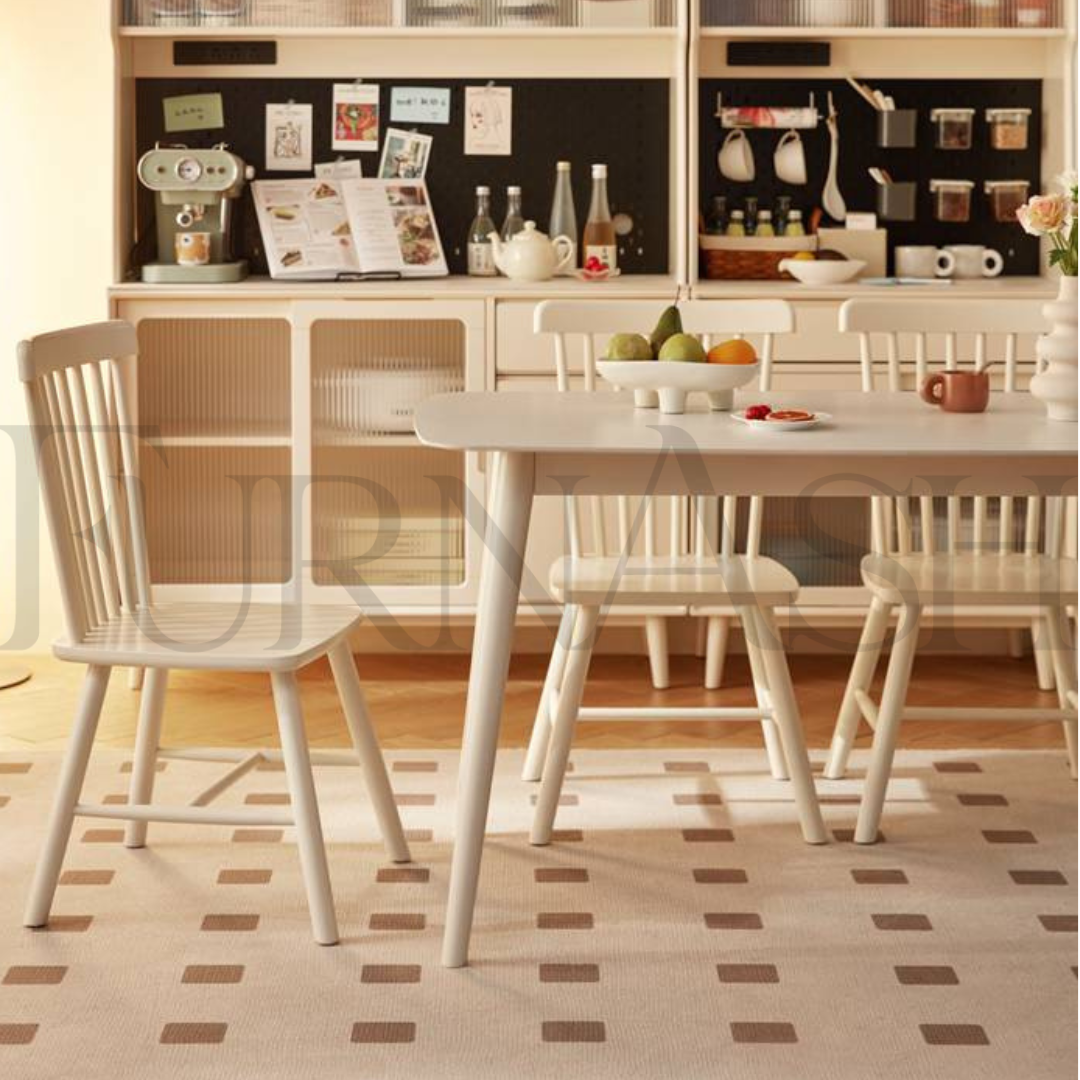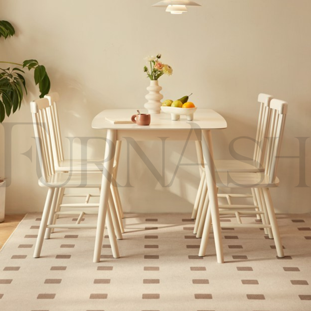 Elevate your dining experience with our Saray Wooden Off White Dining Table and Chairs Set. Crafted from organic rubber wood, this set is not only simple and sturdy, but also sustainable. Enjoy the beauty and durability of natural materials while reducing your environmental footprint. Make a statement with this timeless and eco-friendly dining set.
