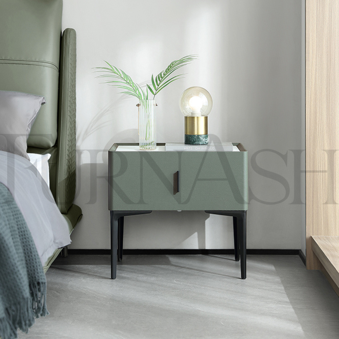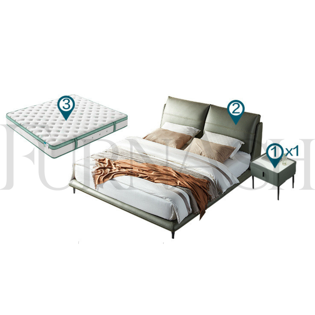 Introducing the Stepney 3 Piece Furniture Set! Its minimal design adds a touch of elegance to any room. The King Bed has a retractable headrest which provides added comfort. Cleaning is a breeze with its easy-to-clean faux leather and its stunning moss green color will complement any decor. Transform your bedroom into a luxurious oasis today!