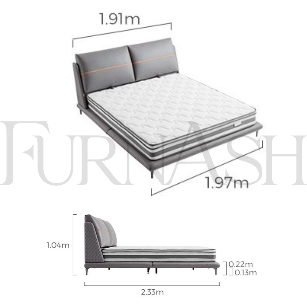 - Bed Frame: (L) 233cm x (W) 197cm x (H) 104cm