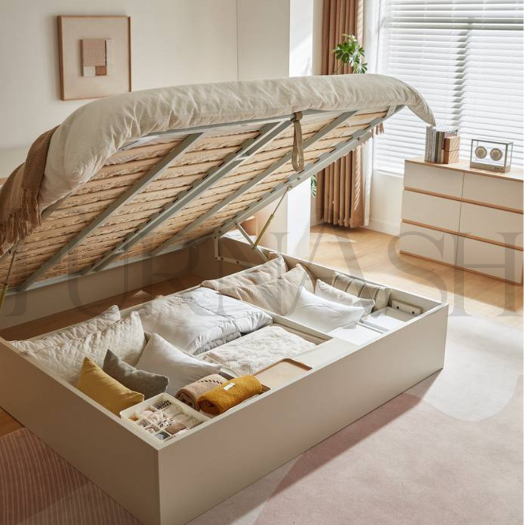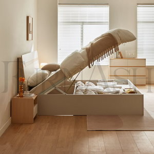 Transform your bedroom with our Stria Hydraulic Bed With Storage! This sleek and minimal design offers ample storage options, making it perfect for small spaces. Say goodbye to clutter with the under bed storage, upgrade your sleep experience now!