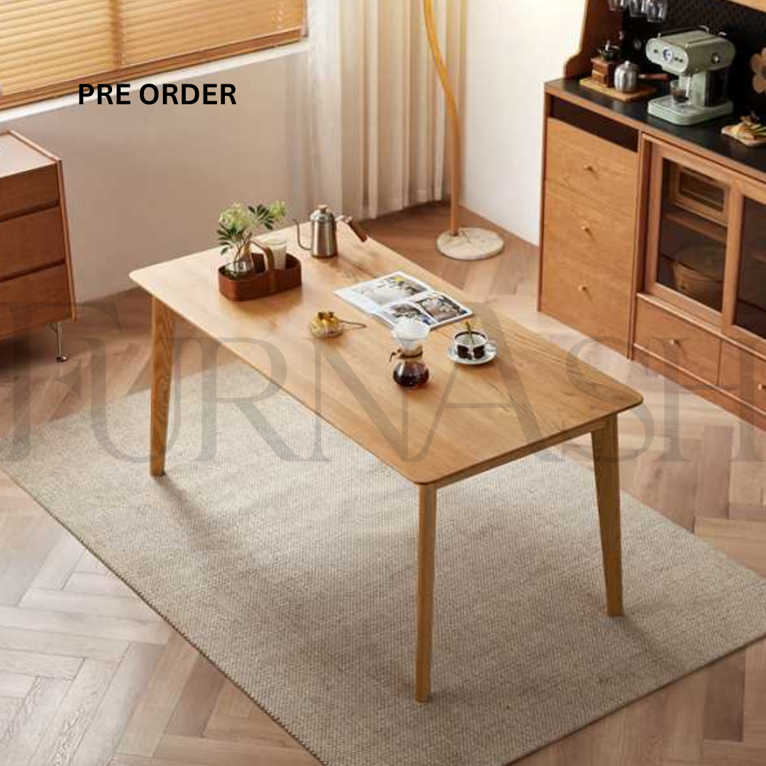 Transform your dining room with the Thomas Red Oak Wood Dining Table. Crafted from sturdy, solid red oak wood, this table brings a touch of country aesthetic to your space. Perfect for family dinners and gatherings, it's designed to last for generations. Upgrade your home with this timeless piece!
