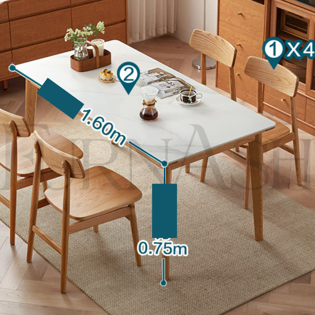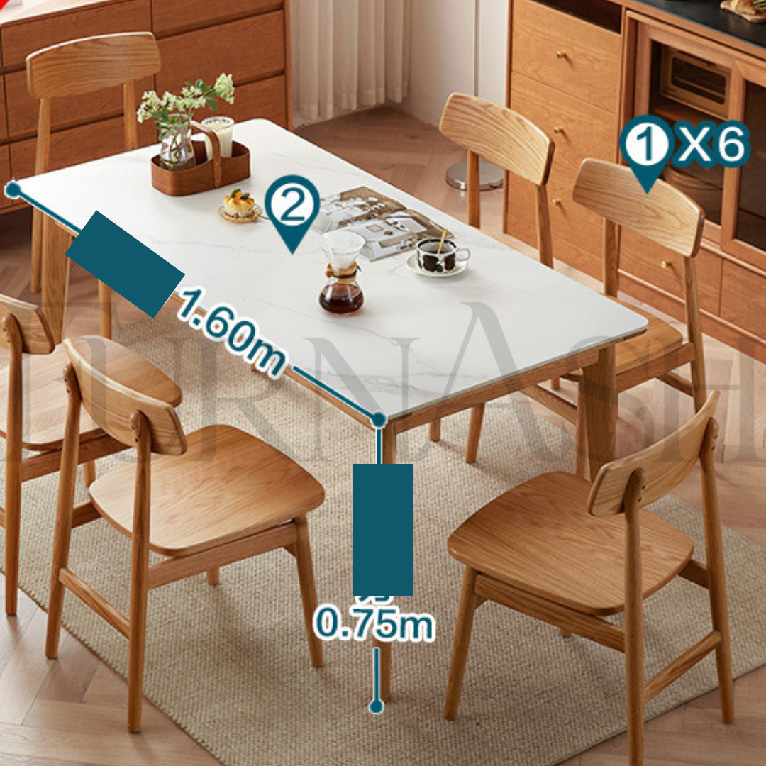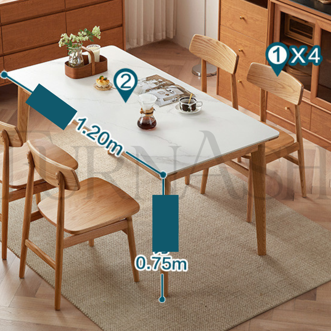 Tommy Red Oak and Slate Stone Dining Table And Chairs Set