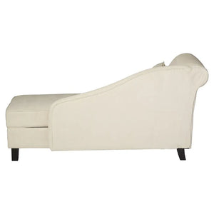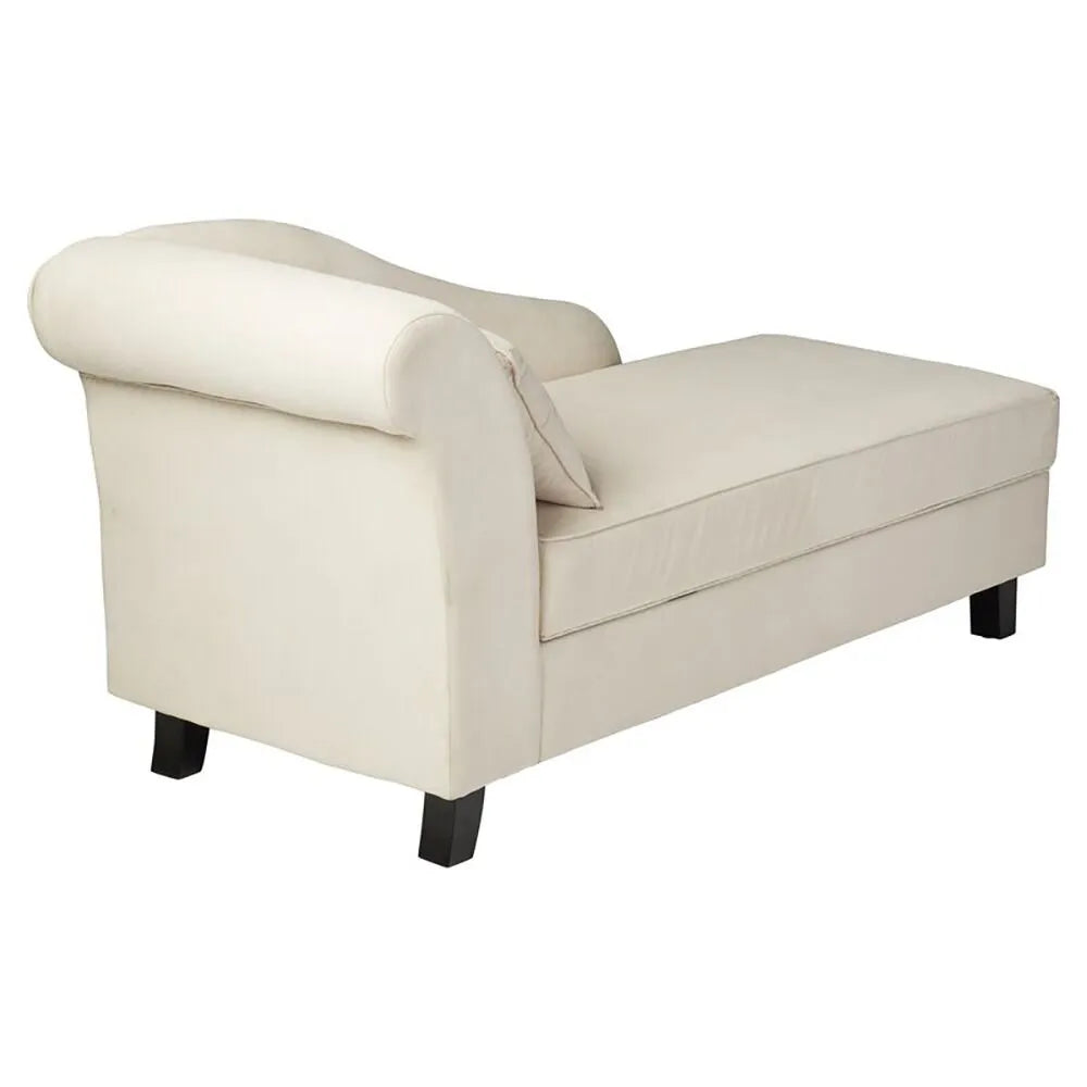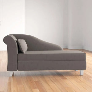 Elevate your space with this left arm chaise lounge. Expertly crafted with a classic silhouette that is simultaneously modern, this luxury piece features a sloping arm and four black finished feet for a sophisticated touch. It is upholstered in soft fabric, built with a solid wood frame, and padded with foam fill and coil spring support for ultimate comfort. Includes a toss pillow for additional comfort.