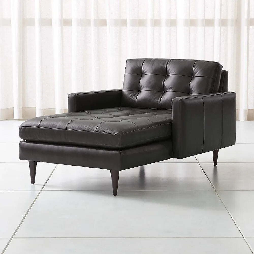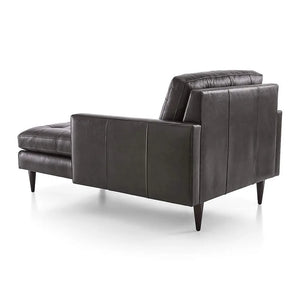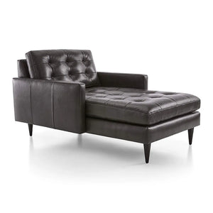Elevate your living space with the William Leather Chaise Lounge. Featuring stunning modern leather upholstery, tufted button details, and a mid-century modern design, this timeless piece embodies an on-trend 1960's aesthetic, with a slim track arm and scaled deep seat for exceptional comfort. Make a sophisticated statement with this perfect addition to any bedroom, lounge, or office.